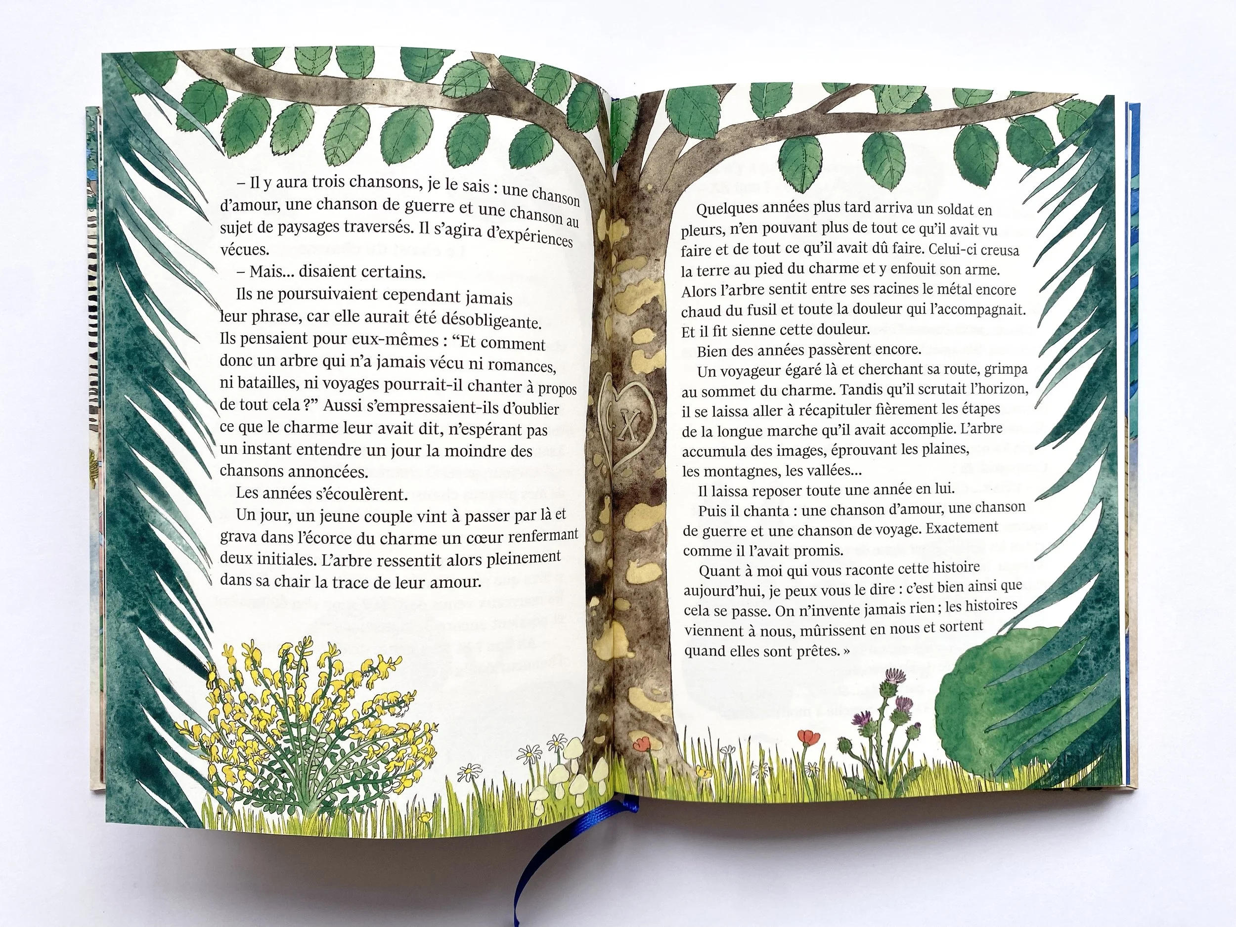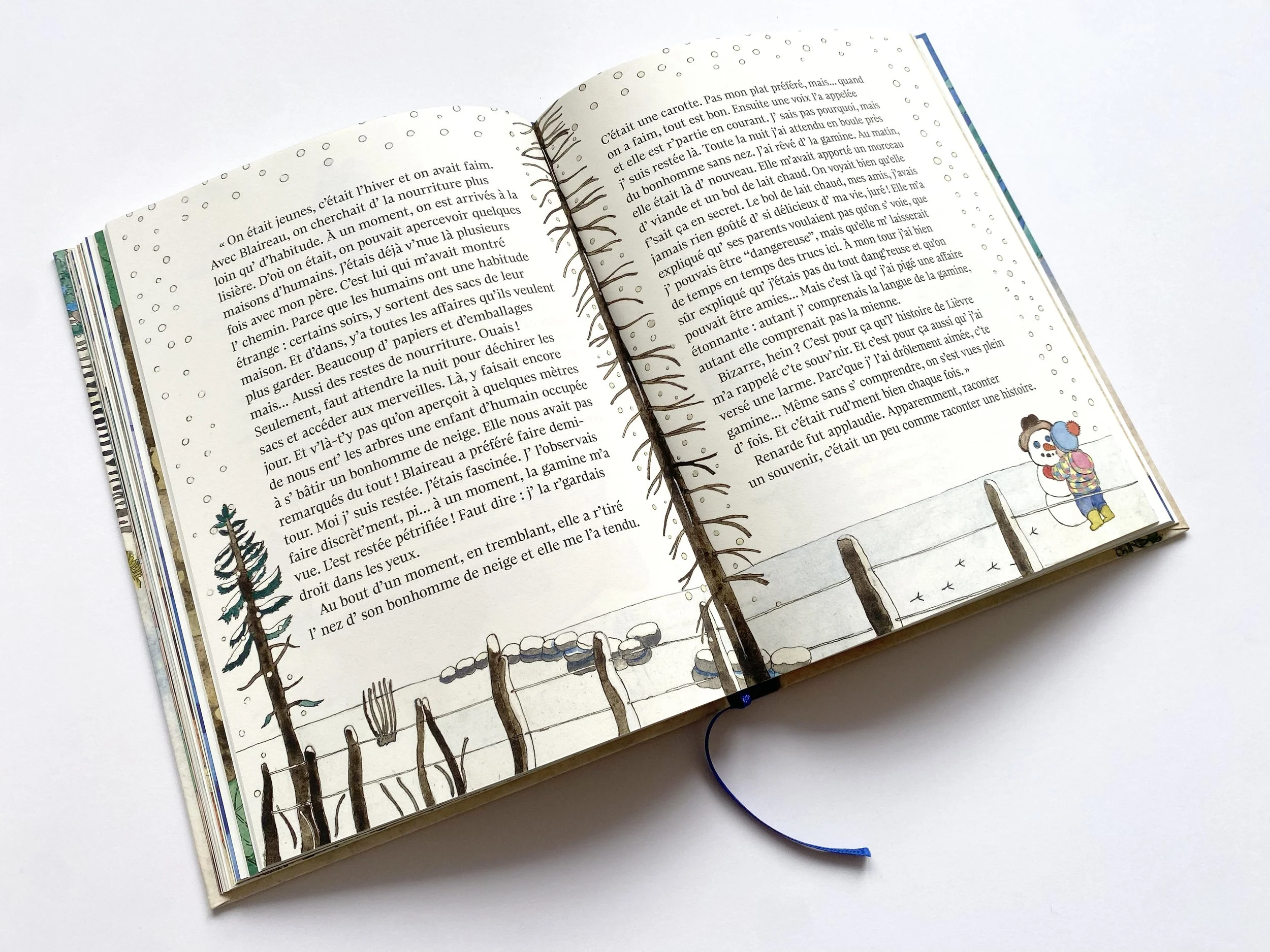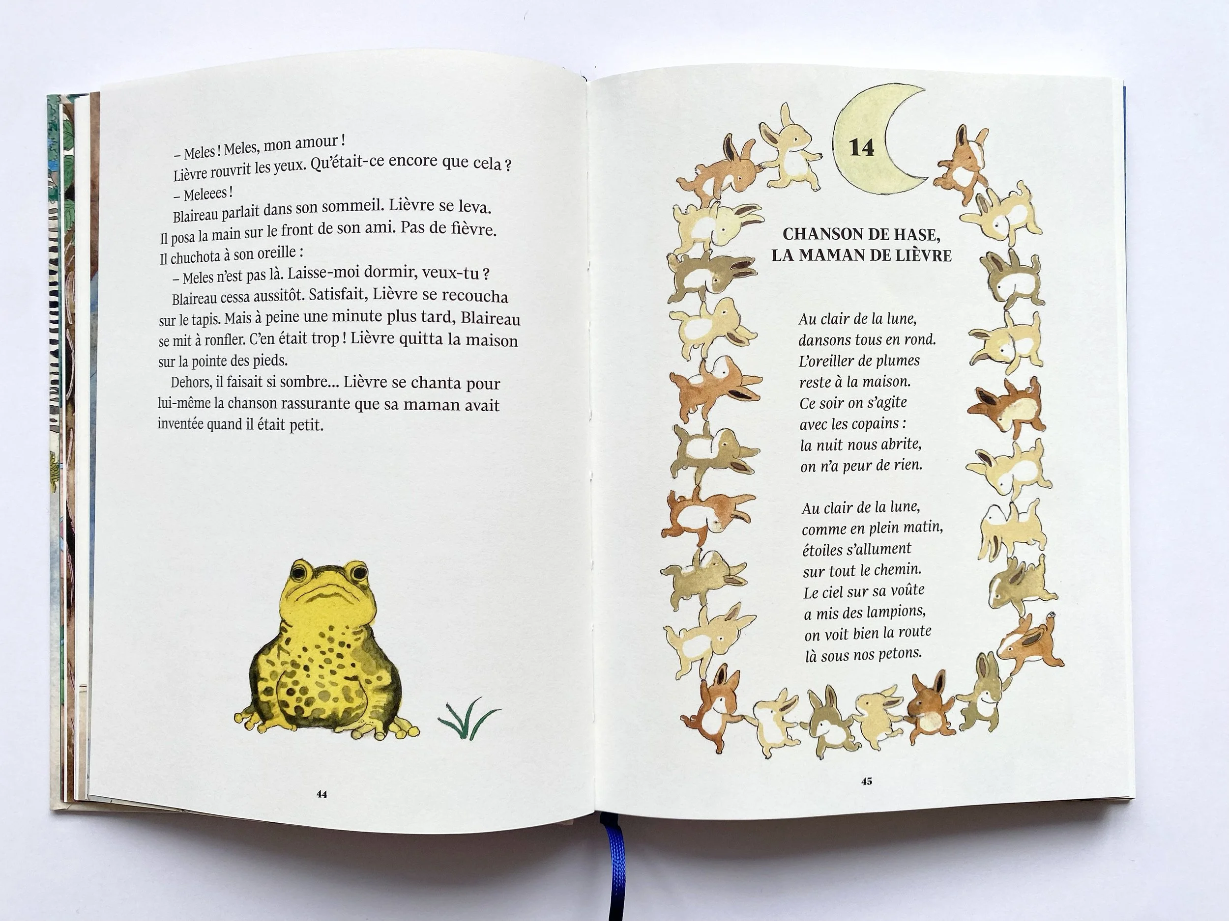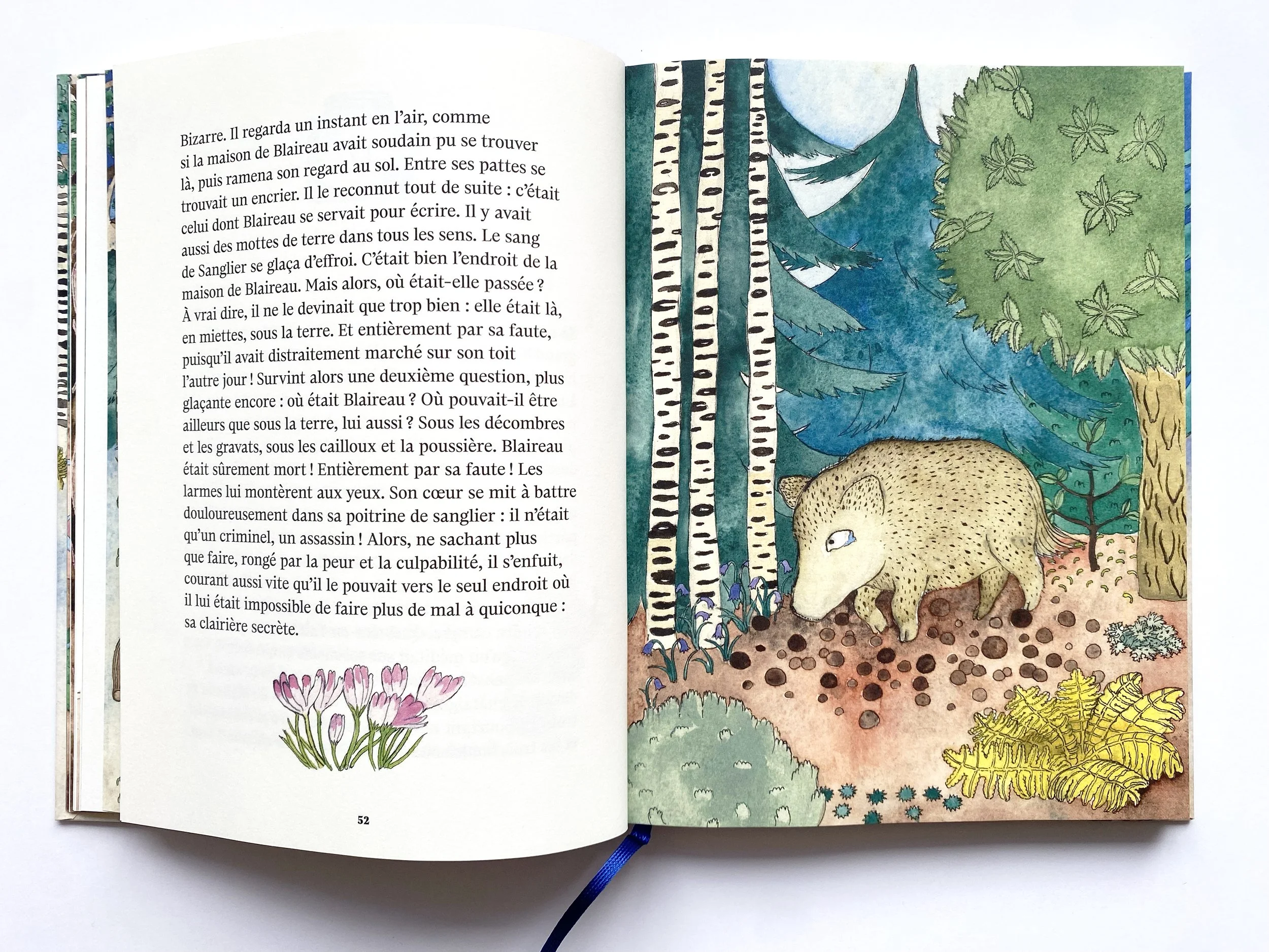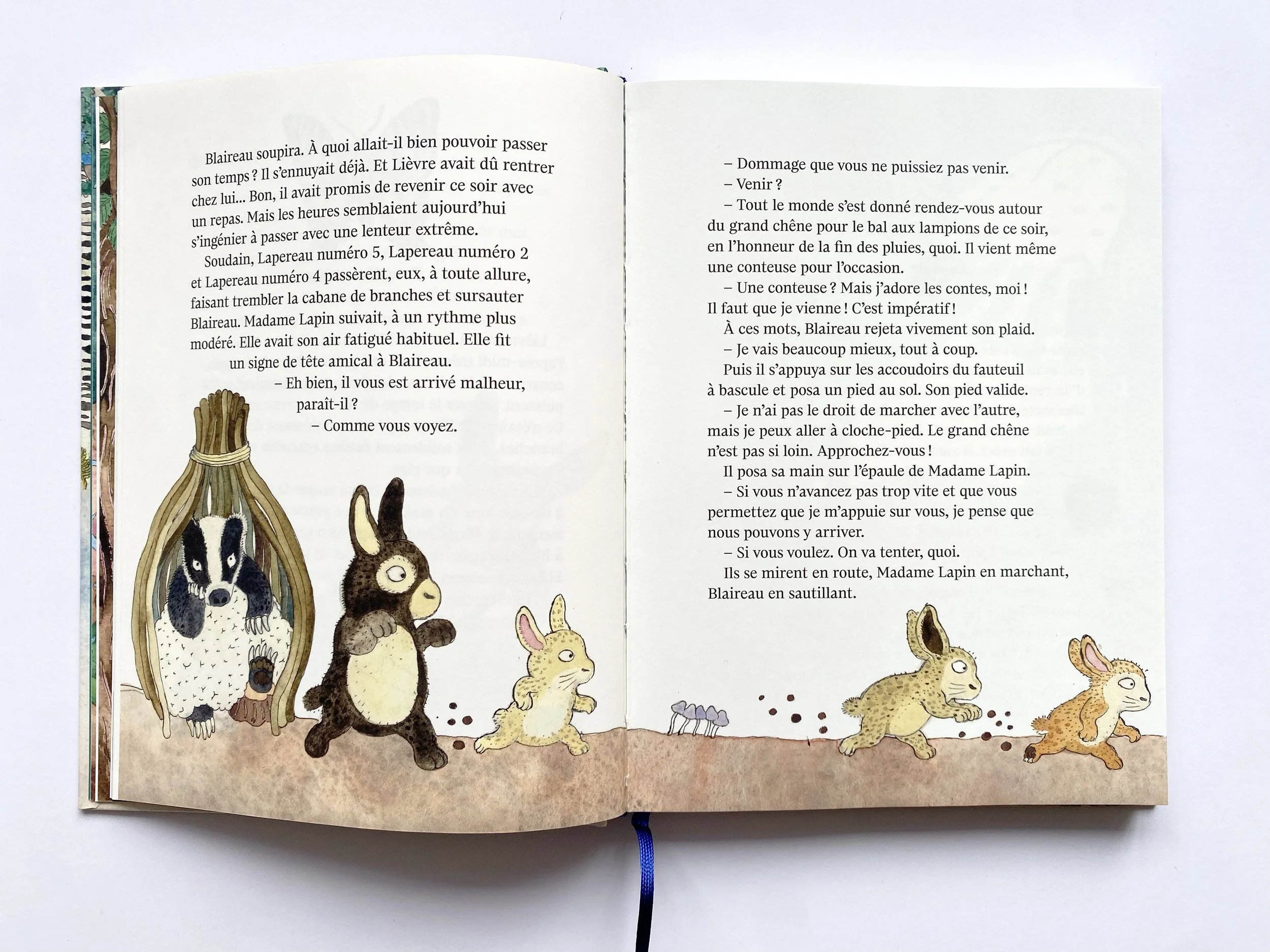 Le terrier de Blaireau s’est écroulé. Pour le distraire, Lièvre convie les animaux du bois à partager des histoires lors de veillées. Contes, poèmes, souvenirs… à partir de ces récits, ils tissent de nouveaux liens, évoquent le passé mais aussi les absents, comme Grand Duc, le paria dont l’ombre plane sur la communauté… À travers une galerie de personnages attachants, ce livre généreux dit l’importance des récits pour faire société et construire une histoire commune.