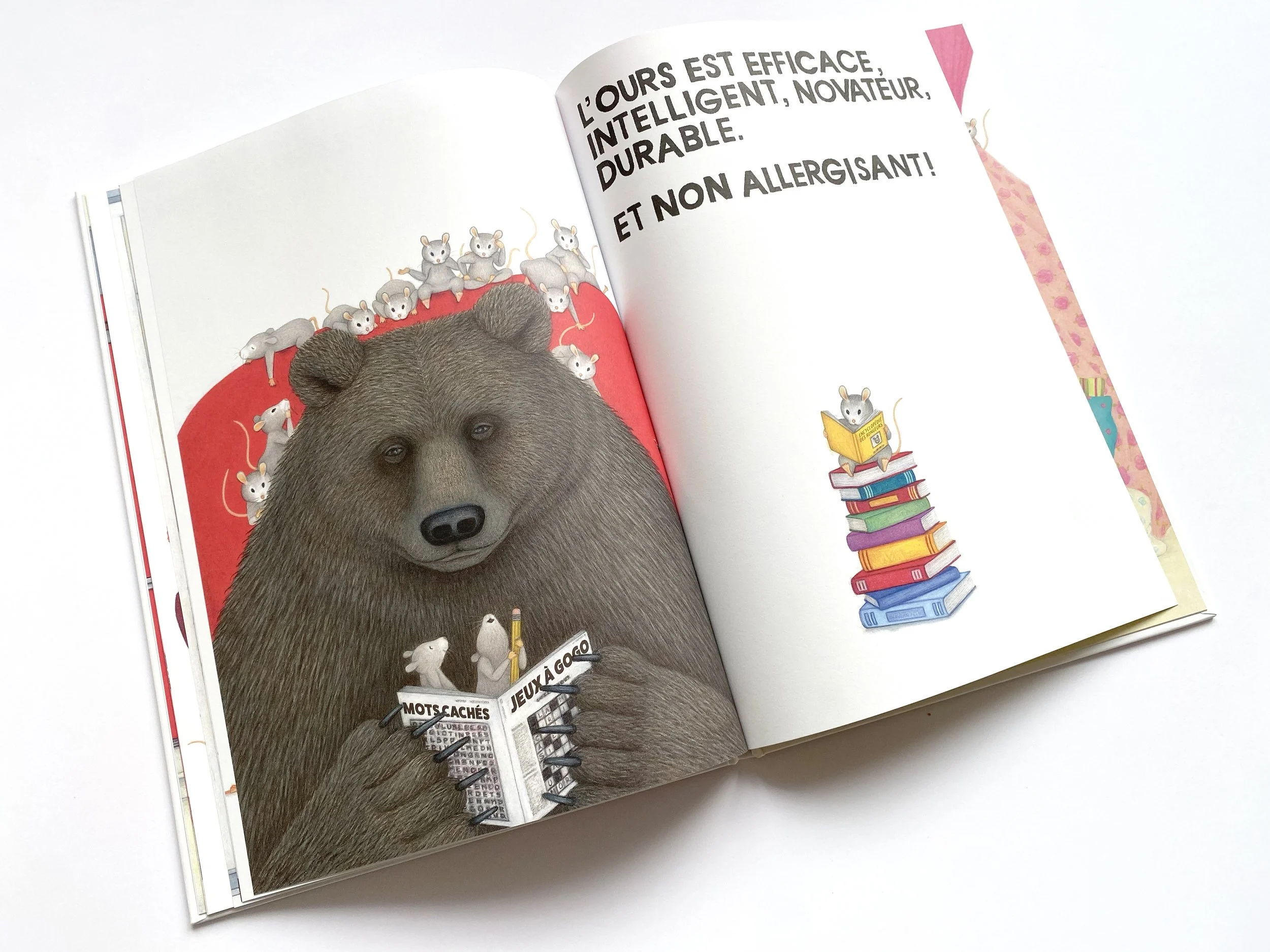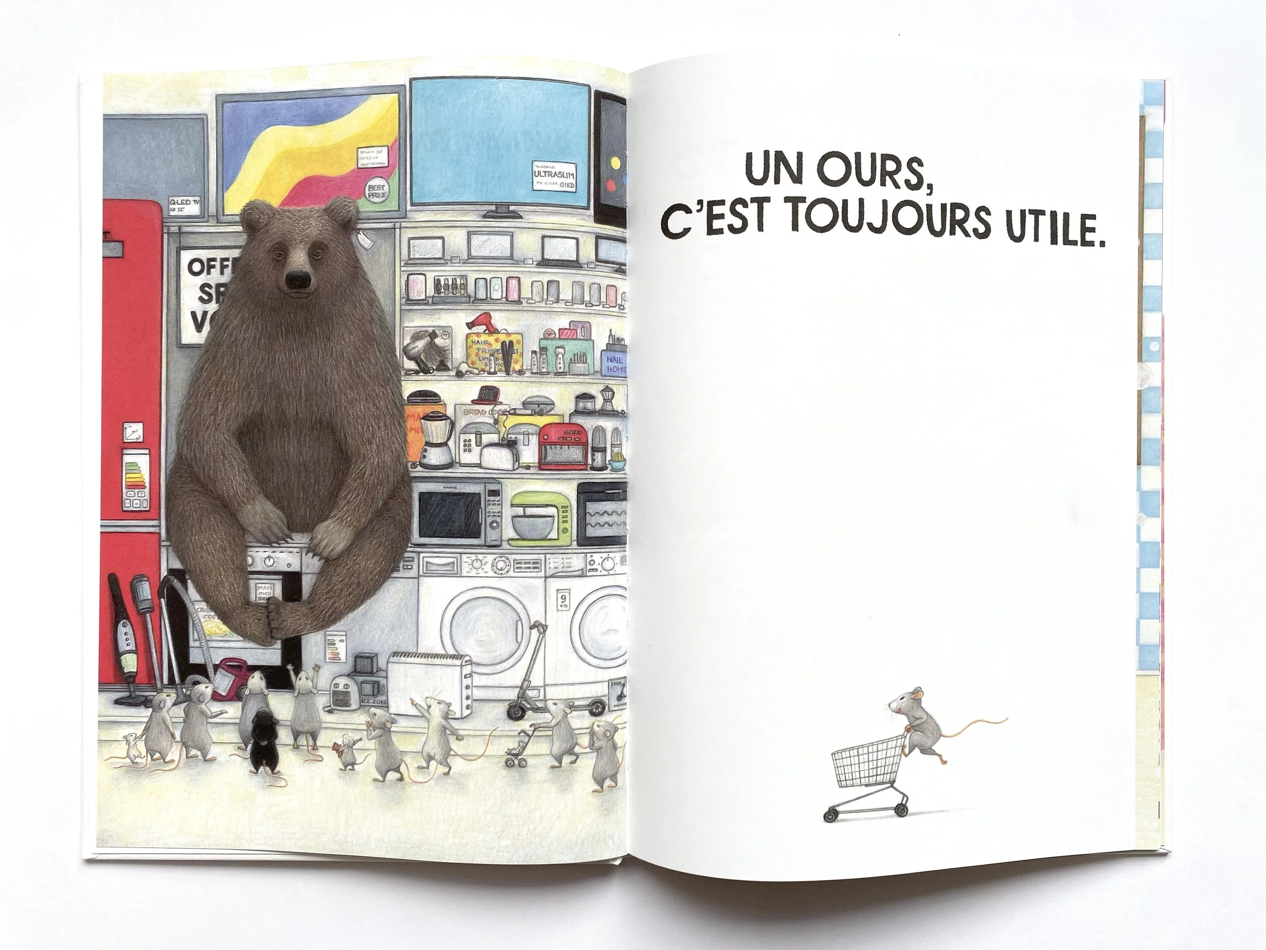 Un ours, c’est toujours utile ! Éco-conçu, respectueux de l’environnement, lavable et facile à utiliser, l’ours est adapté à toute la famille. Il est aussi silencieux, multifonctions, hyper-performant, c’est un gain de temps assuré ! Son design intemporel va avec tout, et il est même personnalisable. En bref : c’est la solution idéale. Cette histoire pleine de souris aide les lecteurs à trouver leur bonheur : il semblerait que l’amitié soit toujours une bonne idée.